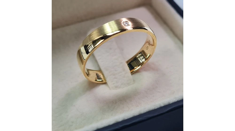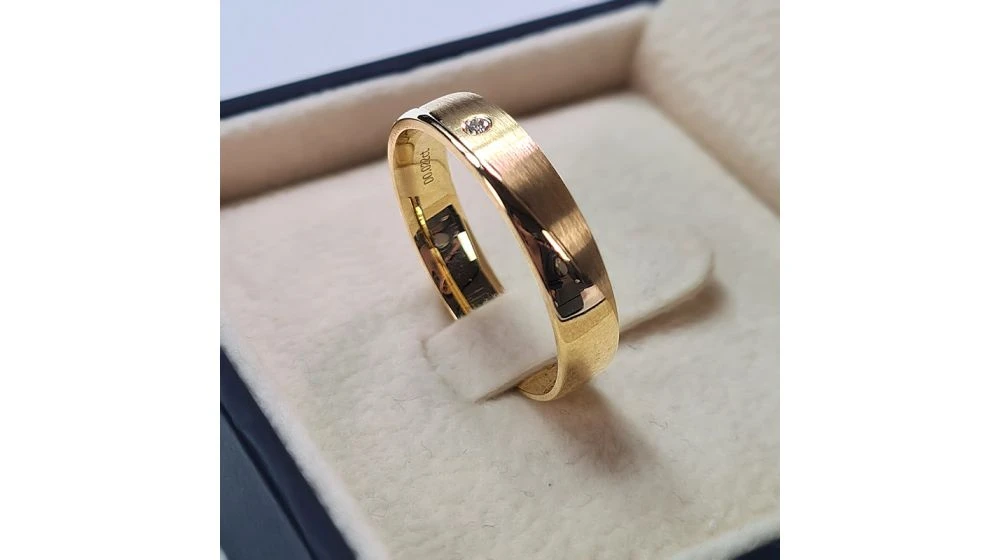 Ne dit-on pas que l’on se « tourne autour » et qu’aimer fait « tourner la tête » ? Il existe dans le fait de tomber amoureux une sorte d’ivresse qui donne des ailes et fait souhaiter le meilleur pour l’autre. Comme cette alliance en or jaune 18 carats pour vous Messieurs dont l'anneau se glissera agilement à votre doigt. Avec ses douces courbures autour d’un diamant solitaire, notre alliance masculine étreintes infinies fait preuve véritablement de caractère.