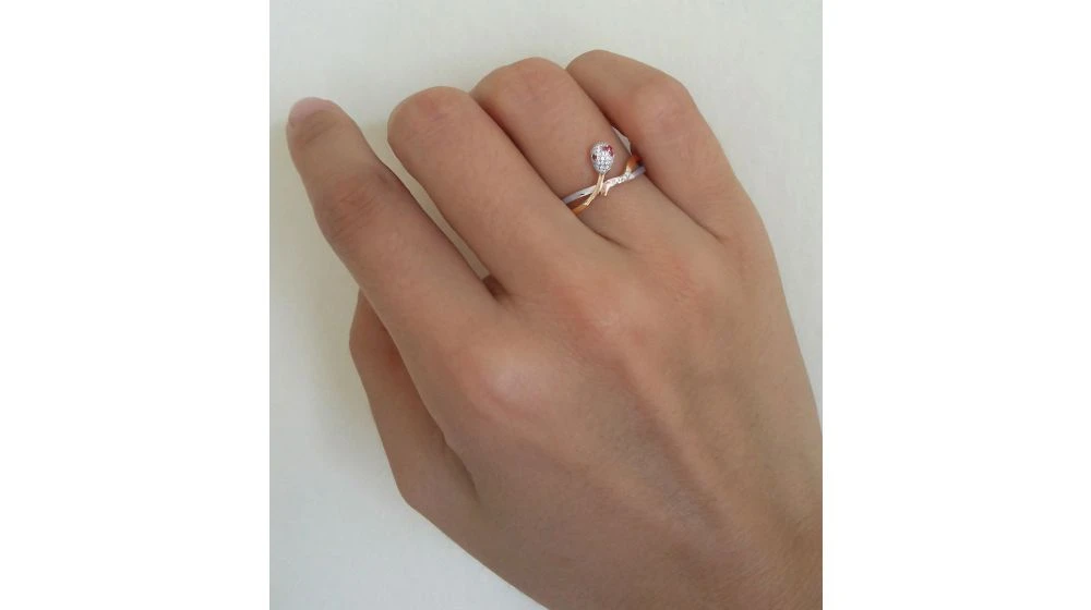 Bague 2 Ors – Or Blanc Et Rose – Allumette Diamantée – Diamants, Rubis