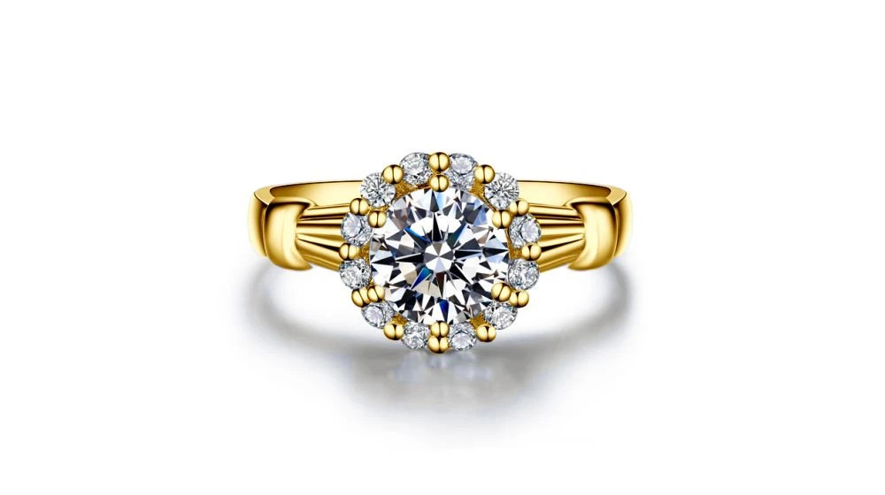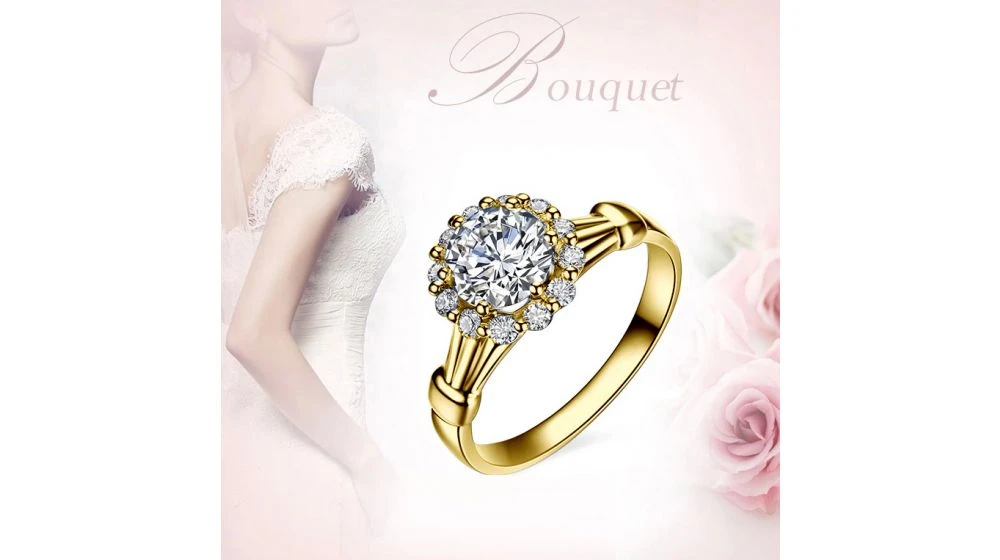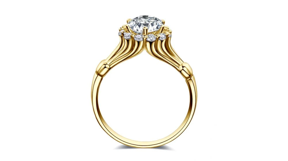 Bague De Fiancailles Hortensia – Solitaire Accompagné, Or Jaune, Diamants