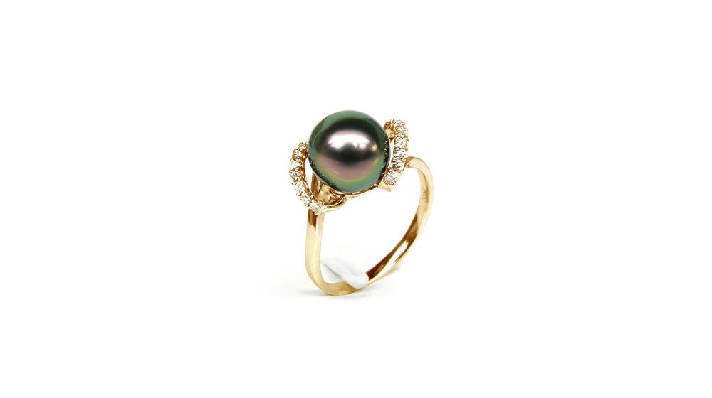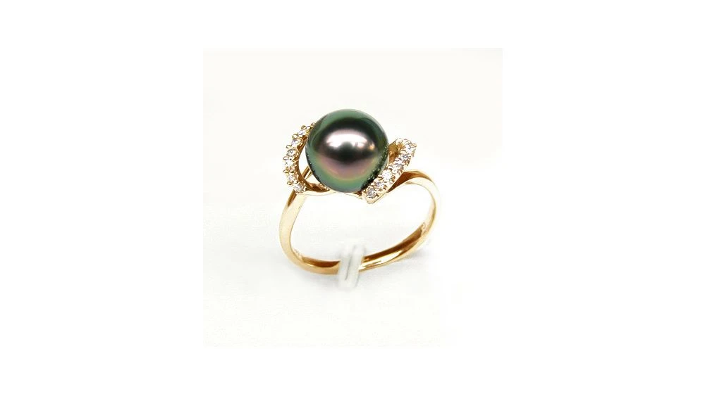 Bague Marion – Perle Tahiti Paon Aubergine – Or Jaune, Diamants