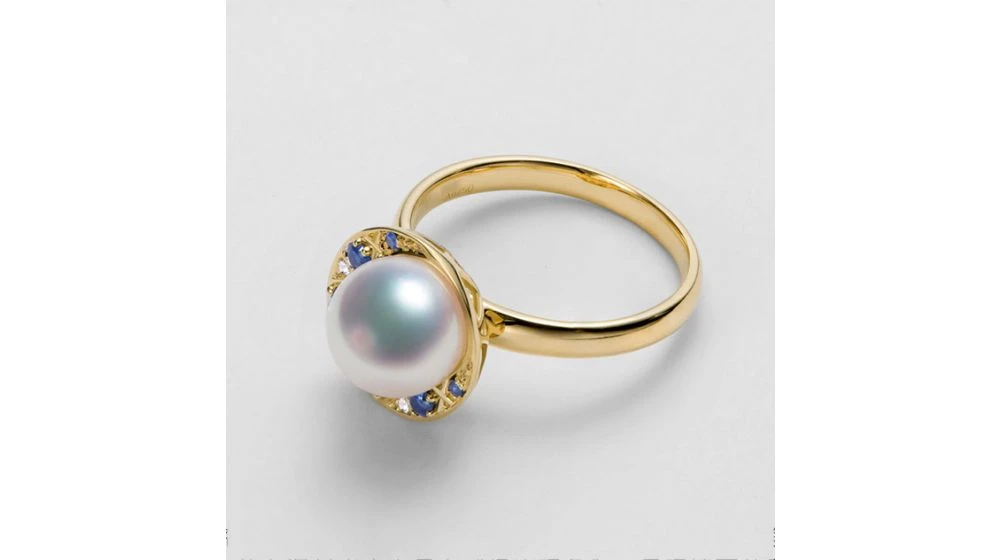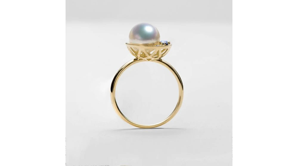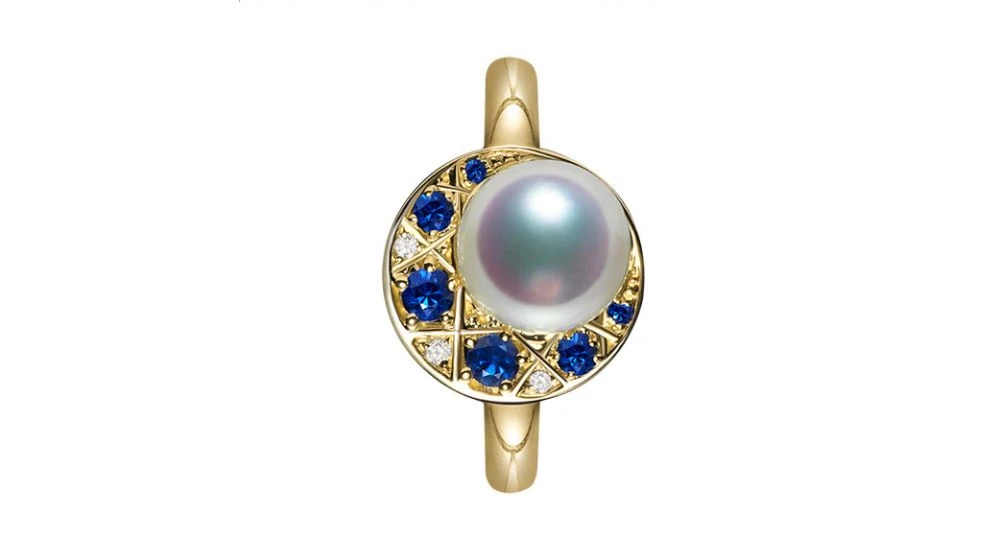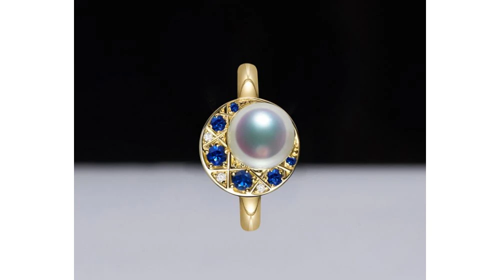 Bague Mikadzuki, Croissant De Lune I Perle Akoya, Saphir, Diamant