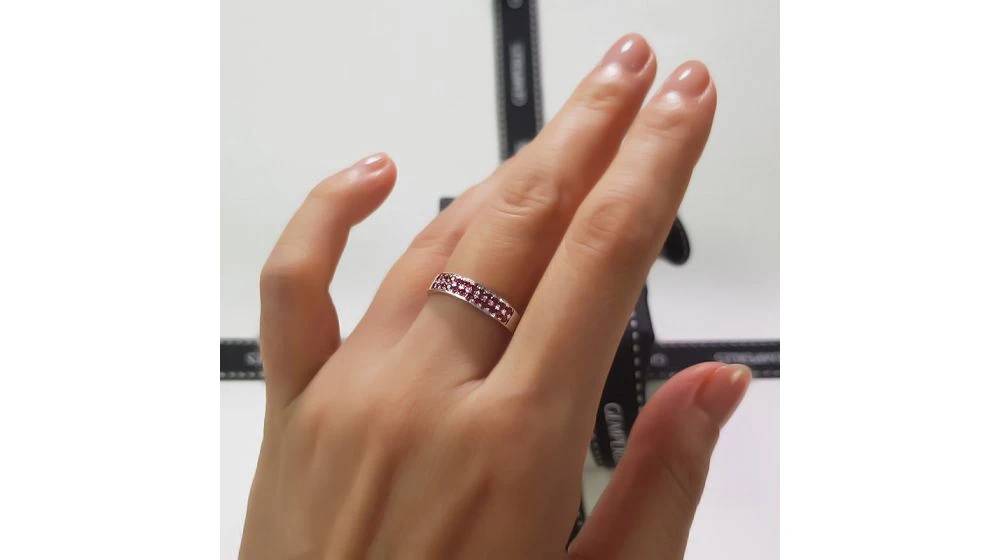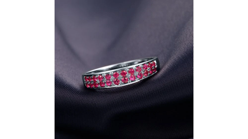 Bague Or Blanc Demi Tour Rubis – 2 Rangées De Pierres Pavées