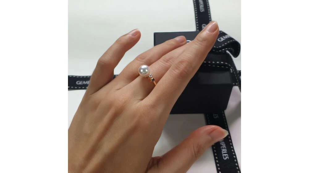 <p><b>De Yuo</b> ou la sensibilité assumée, De Yuo ou la délicatesse incarnée de la perle Akoya couplée à un diamant de 0.050 carat.</p> <p>De Yuo, en français <i>Duo</i> est une bague en Or jaune 18 carats qui reflète bien la finesse de cette perle de mer du Japon… Une perle parfaitement ronde et dotée d'une nacre blanche très épaisse mesurant entre 8 et 8.5mm de diamètre <i>(et jusqu'à 8.5/9mm en option)</i>.. Sa qualité est adjugée AAA</p>