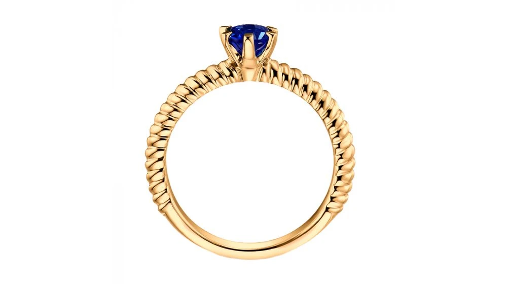 Bague Or Jaune Monture Torsadée. Saphir Bleu 0.55ct