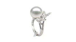 Bague Papillons Gracieux – Perle D’Australie – Or Blanc, Diamants