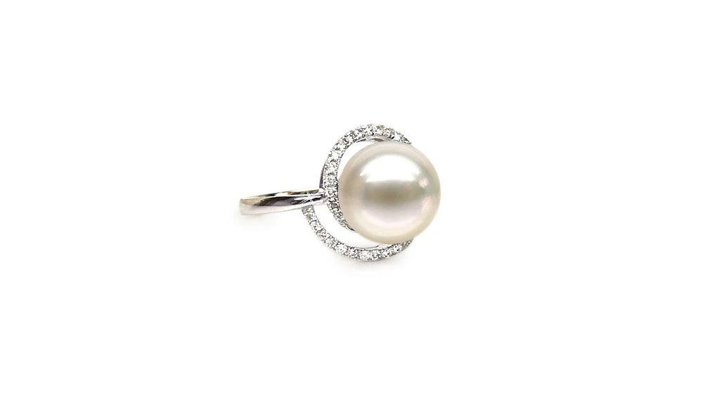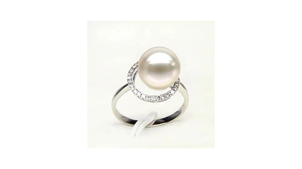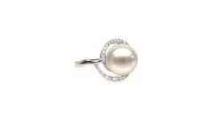 Bague Perle D’eau Douce Blanche – Encerclement D’or Blanc Et Diamants