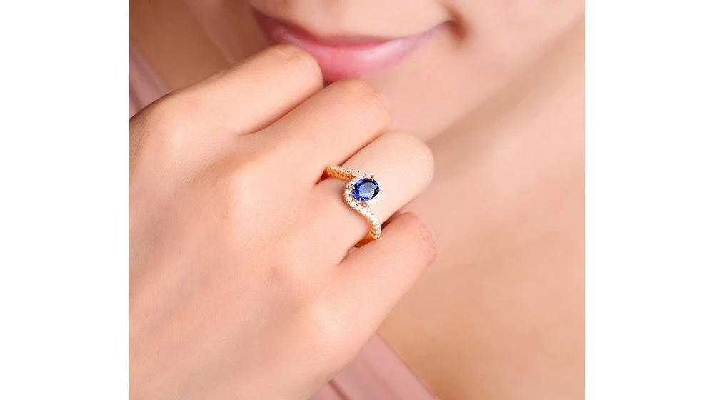 Bague Saphir Or Jaune Pavage Diamant Sinueux