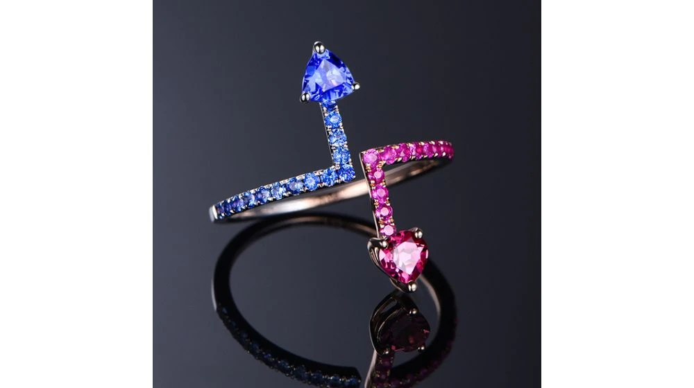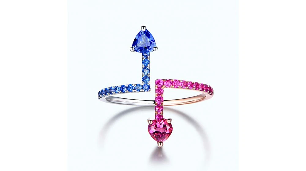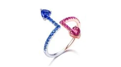 #html-body [data-pb-style=GIVR0HG]{justify-content:flex-start;display:flex;flex-direction:column;background-position:left top;background-size:cover;background-repeat:no-repeat;background-attachment:scroll}Ils évoluaient tous deux, côte à côté dans deux univers parallèles, inconscients de leurs propres existences. Tel pourrait être un excellent début de roman, ou l’image offerte par cette bague moitié or blanc, moitié or rose 18 carats. Saphirs roses enflammés pour le côté féminin, saphirs bleus pour symboliser l’aplomb masculin. Qui sait si un jour l’assurance de l’un de ne pourrait pas être troublé par l’ardeur de l’autre et vice et versa, au gré d’une rencontre fortuite …