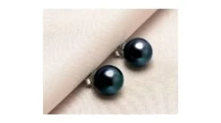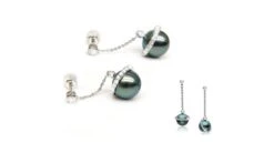 Boucles Oreilles Perles Akoya Noires Japon 7/7.5mm. AAA, Or Blanc