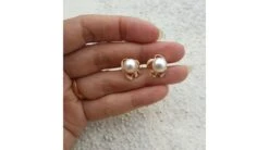 Dormeuses Boucle Oreille En Or Blanc – Perles De Culture Roses 8/9mm