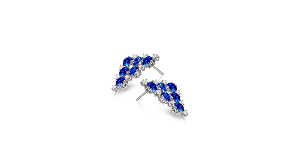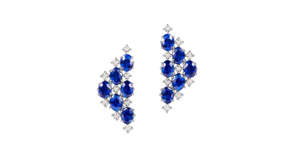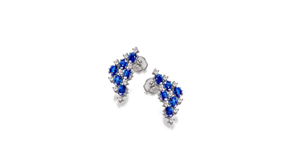 Boucle D Oreille Triangle Des Bermudes – Saphir, Or Blanc, Diamant
