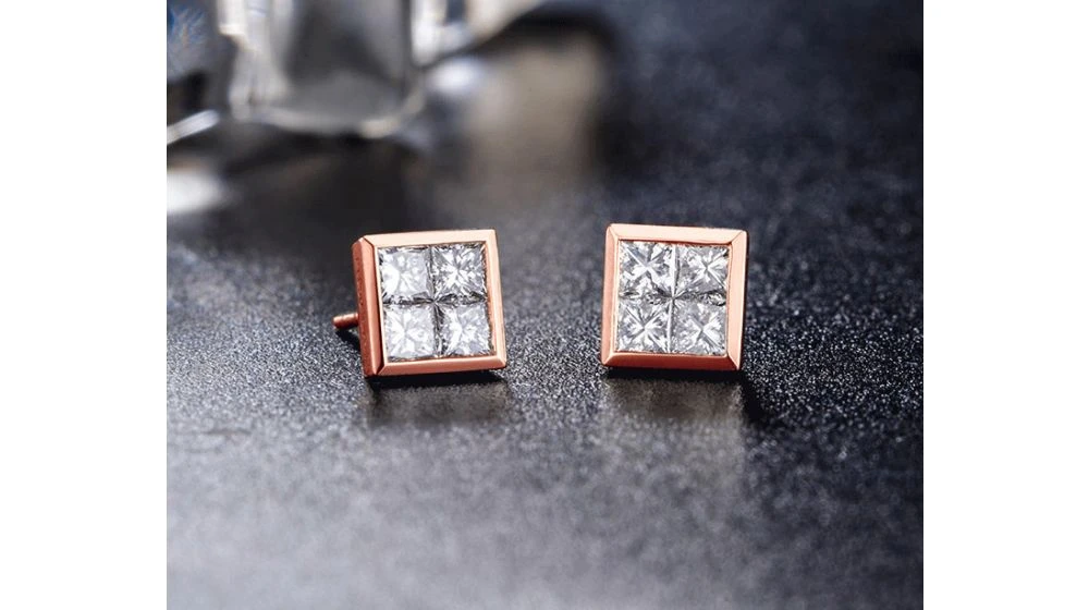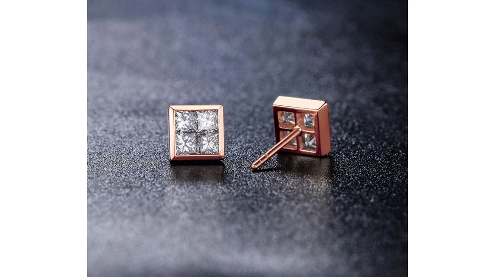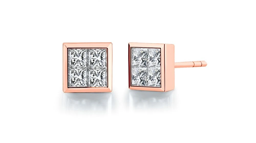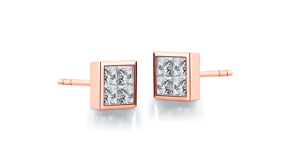 Boucle Puce Personnalisable Diamant Princesse 0.40ct. Or Rose