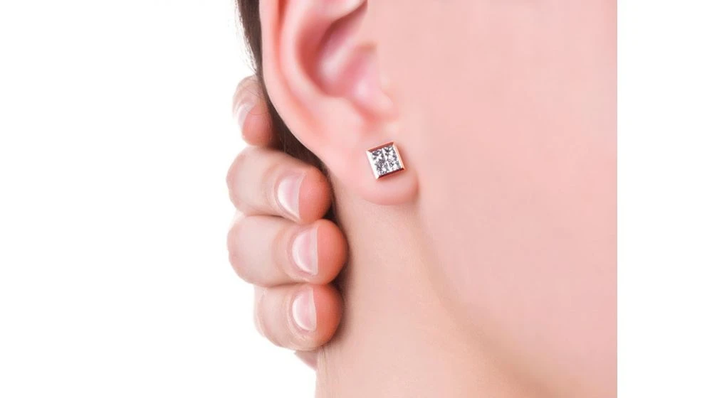 Puces Diamants Taille Princesse 0.20ct. Or Blanc. Personnalisable