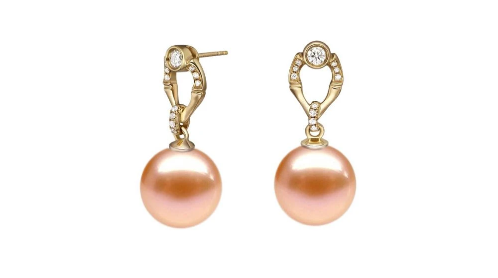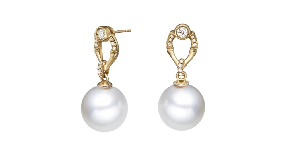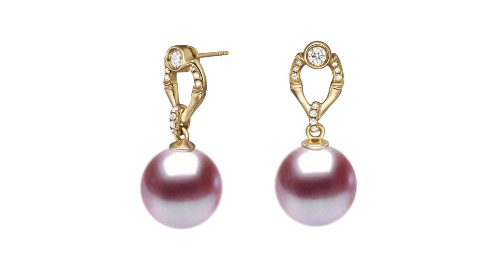 Boucles d'oreilles à la touche distinctive. Les montures en or jaune 18 carats et diamants micro-sertis, forment deux tiges de bambou s'unissant autour d'un diamant clos. Gracieuse, les deux perles se confortent l'une l'autre, avec leur diamètre tout d'abord, compris entre 9 et 11mm puis leur qualité enfin, AAA, symbole d'un lustre très brillant, d'une surface propre et d'une rondeur à la hauteur. Particularités : Les boucles sont de de type clou et traversent les oreilles via deux tiges. Elles sont maintenues par une attache confortable en forme de papillon. Deux crans sur chaque bout de tige sécurisent le port.