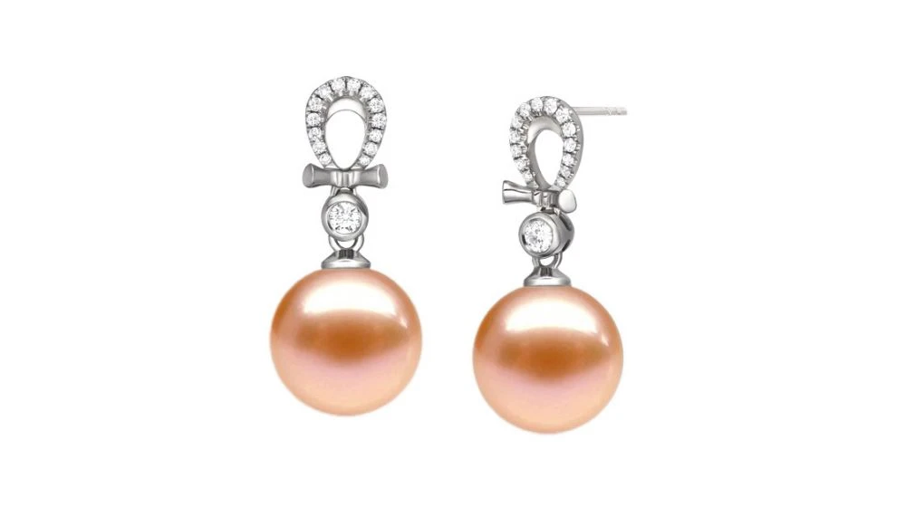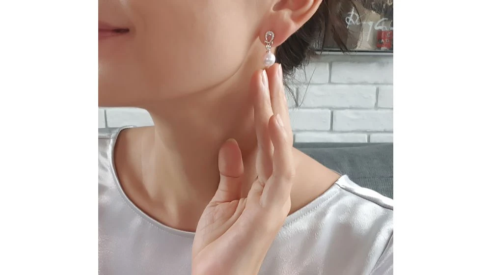 Dormeuses Boucle Oreille En Or Blanc – Perles De Culture Roses 8/9mm