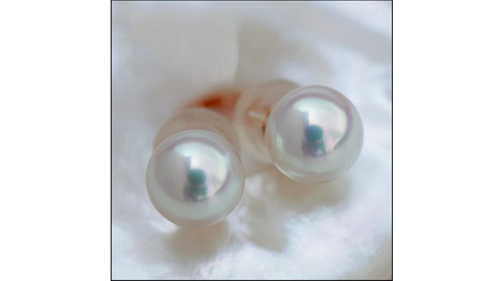 Boucles D’Oreilles Clous. Perles Akoya Gemme. Or Jaune I Aki