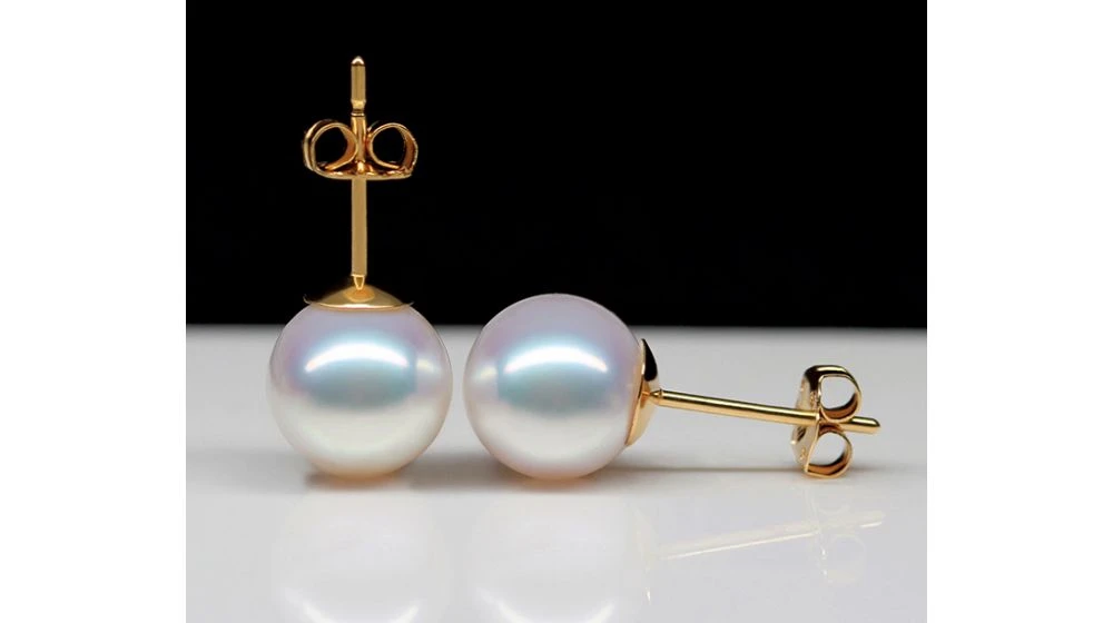 Boucles D’oreilles Perles Akoya Blanches – 7.5/8mm – GEMME – Or Jaune