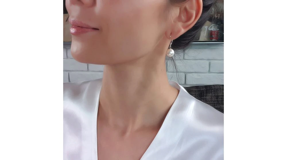 Dormeuses en or blanc, rehaussées de deux perles de culture blanches de qualité GEMME. Les perles sont parfaitement rondes. Leur lustre et orient sont également de très bonne qualité. Très confortables à porter, ces perles authentiques feront raillonner votre allure. La hauteur de la boucle, perle incluse, est de 2.5cm environ.