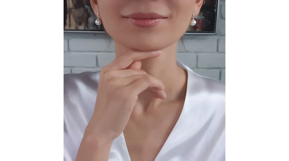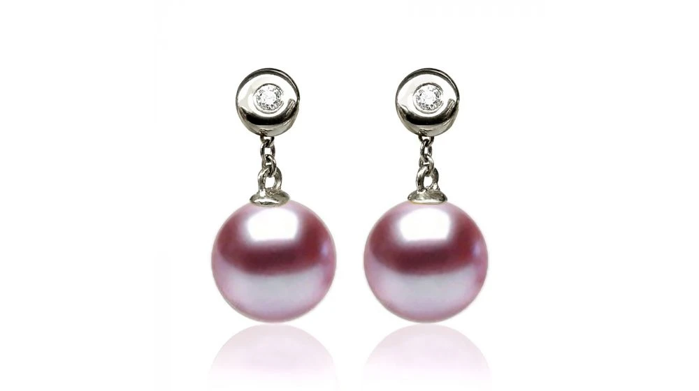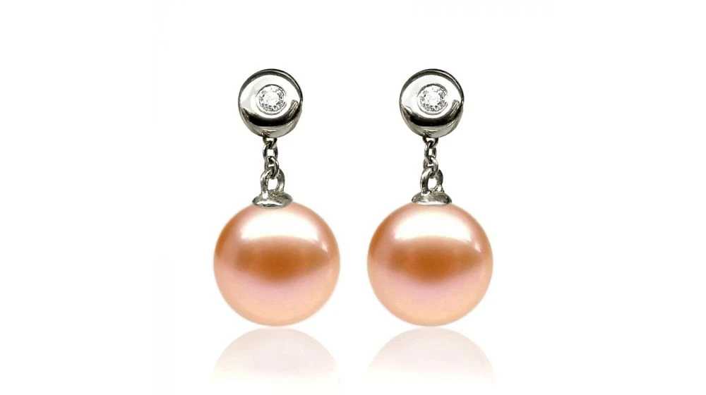 Dormeuses Boucle Oreille En Or Blanc – Perles De Culture Roses 8/9mm