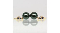 Boucles D’oreilles – Or Jaune – Perles De Tahiti – Saphirs – Diamants