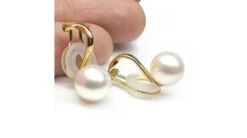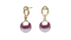 Boucle Oreille Or Jaune – Crochets Perles De Culture Roses – 8/9mm