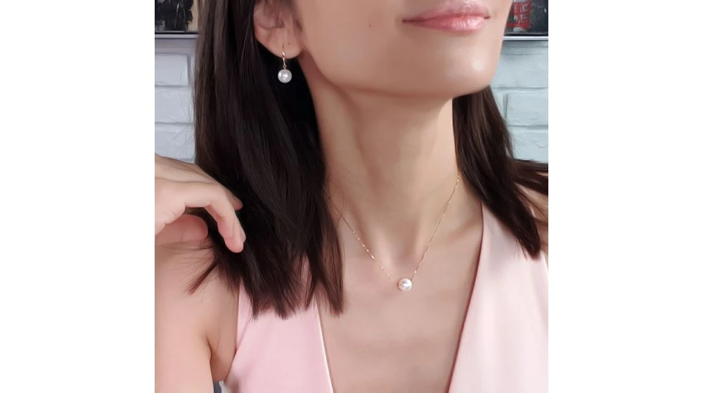 Dormeuses Boucle Oreille En Or Blanc – Perles De Culture Roses 8/9mm