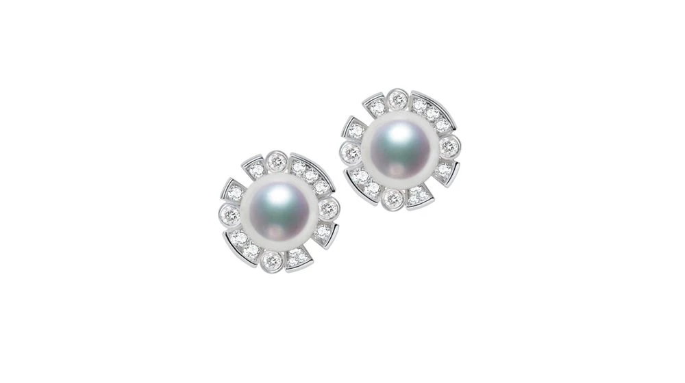 Boucles Oreilles Fleur Luxe. Perles Akoya, Or Blanc, Diamants