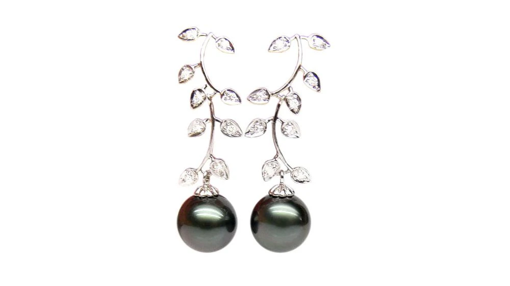 Boucles Oreilles Nature – Perles De Tahiti Noires – Or Blanc, Diamants
