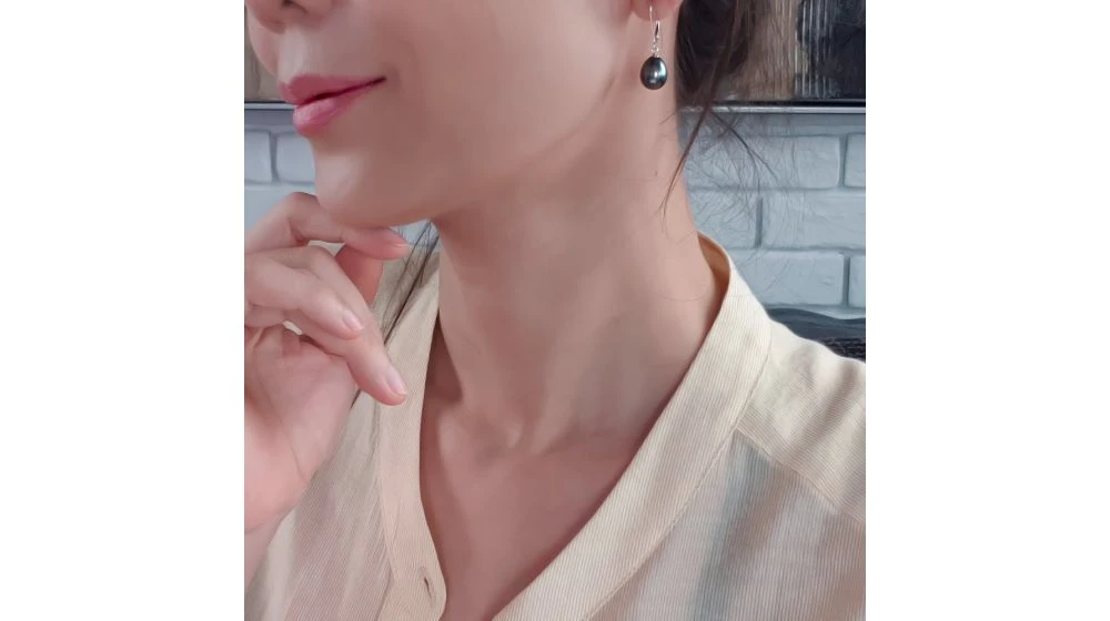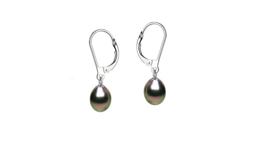 Boucles Oreilles Or Blanc – Perles Noires – Dormeuses Eau Douce 8.5/9mm