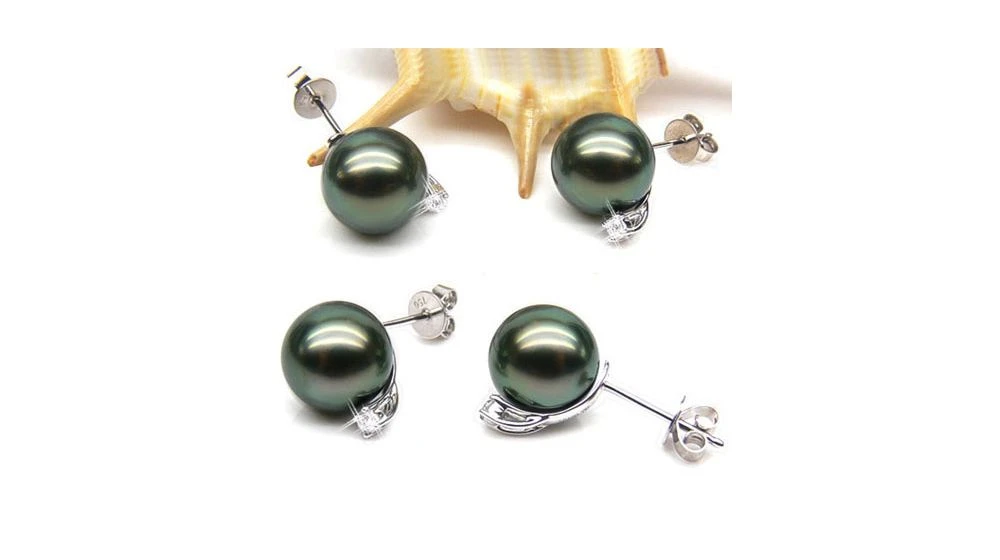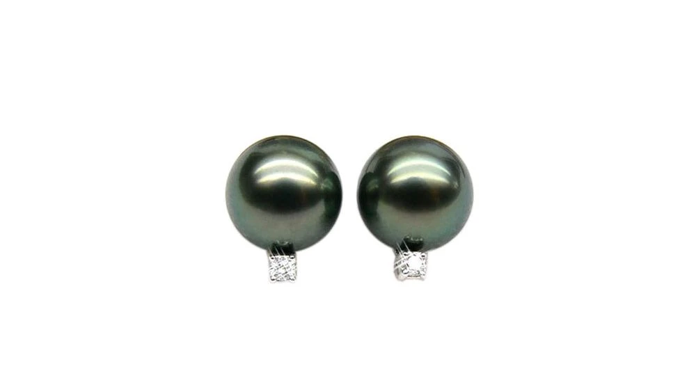Boucles Oreilles Perles – Clous Or Blanc – Perle De Tahiti – Puces Diamants