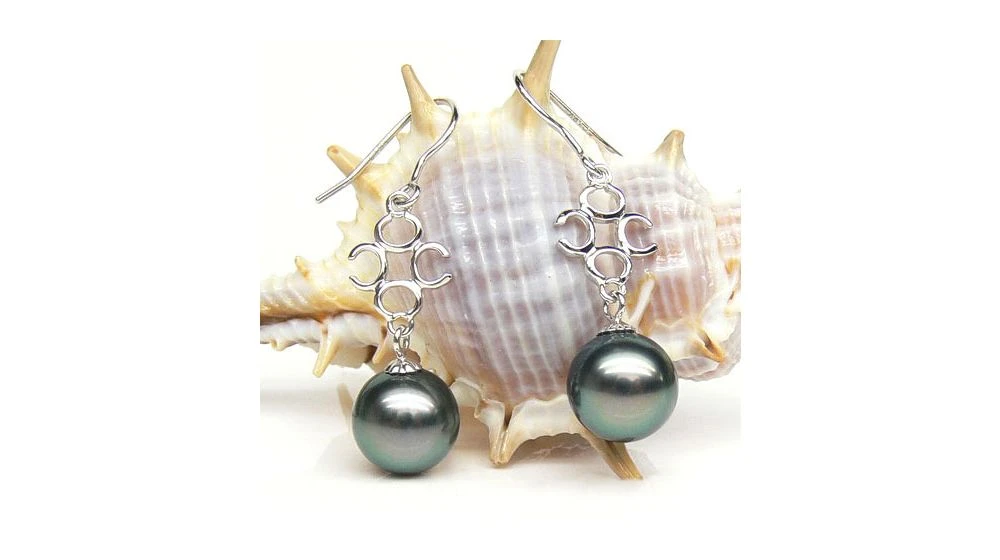 <p>Boucles d’oreilles en or blanc et perles de Tahiti (noires, orient bleu, vert) de qualité top gemme. Les boucles sont de type crochet.</p>