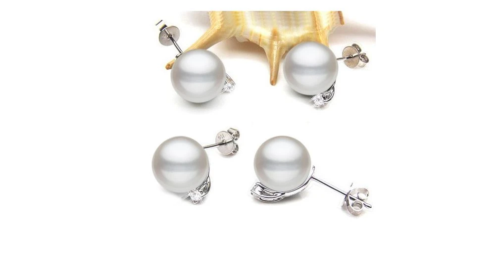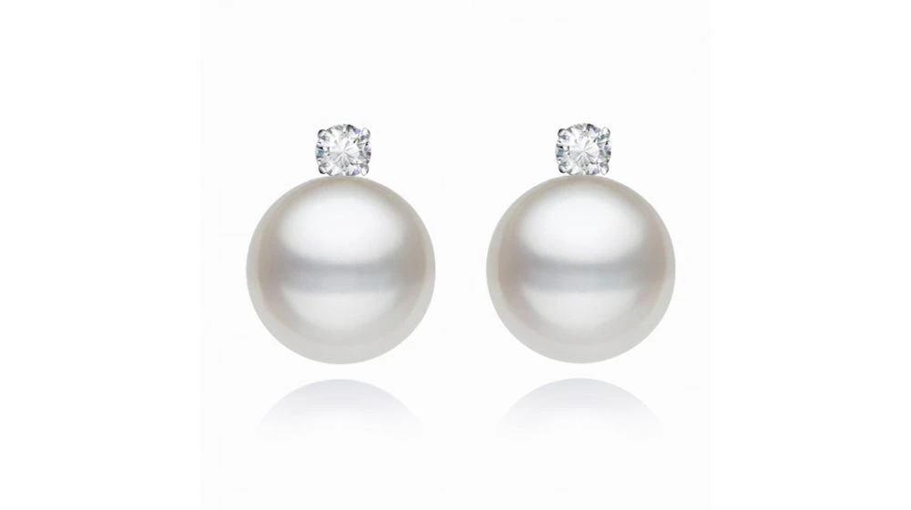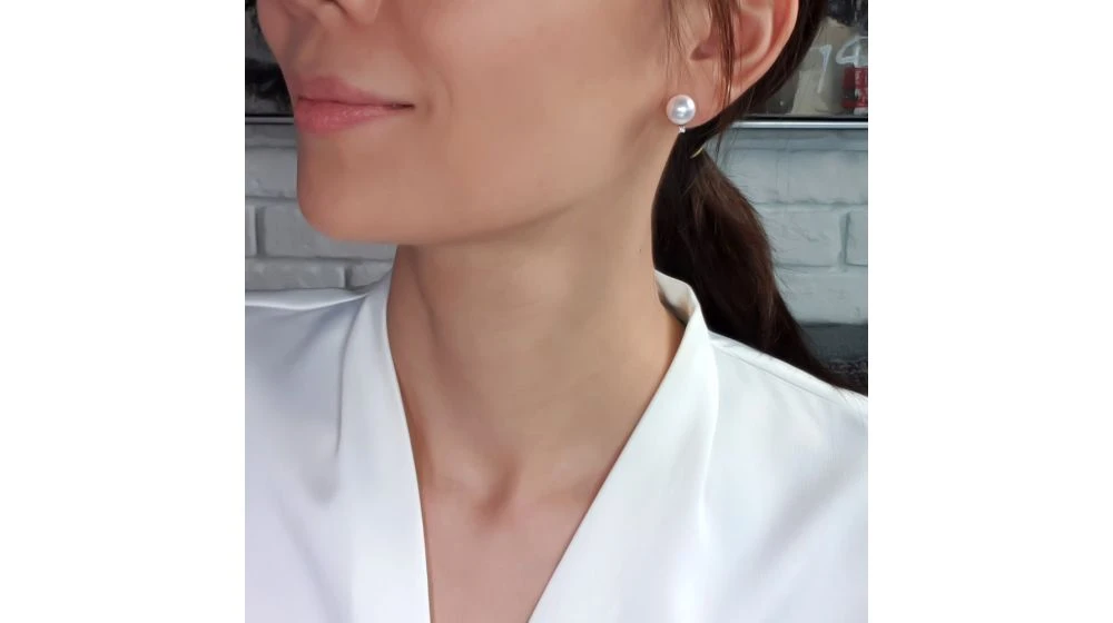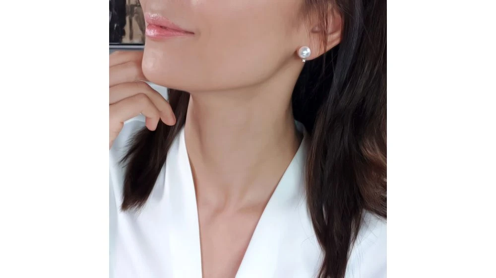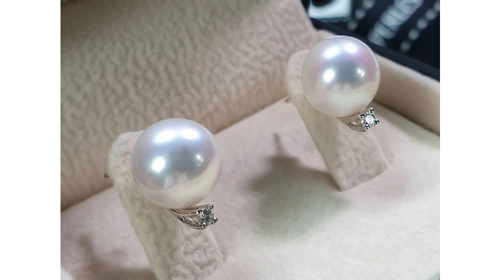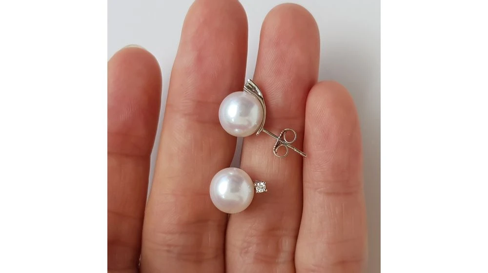 Boucles Oreilles Perles Et Puces Diamants. Or Blanc