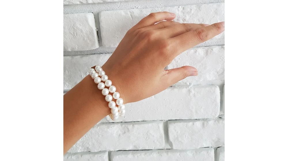 <p><strong>Bracelet</strong> <strong>double rang</strong> en <strong>perles</strong> d'eau douce <strong>blanches</strong> de qualité <strong>AAA</strong>. Ces perles sont de taille standards et remarquables dans leur composition. Dotées d'une surface de nacre presque parfaite, ces perles rondes sont pourvues d'un lustre très brillant et d'un orient profond. La nacre est très épaisse.</p> <p>Une sélection rigoureuse disponible parmi les meilleurs crus de perles d'eau douce.</p> <p><span style="text-decoration: underline;">Enfilage</span> : Perles montées sur un double fil de soie. Nouage soigneux entre elles pour éviter toute friction. <i>(Fil spécialement conçu pour les perles)</i></p>