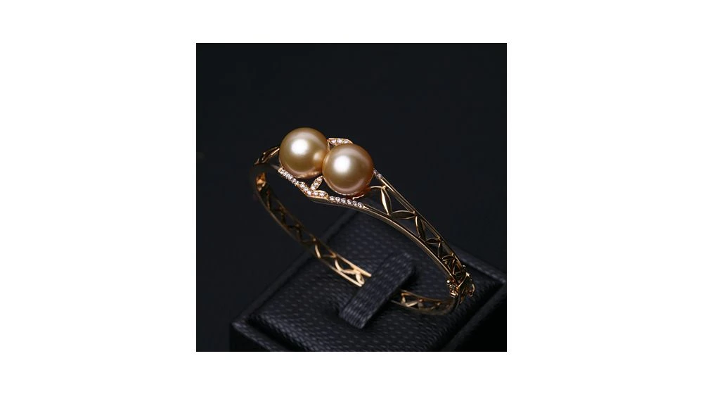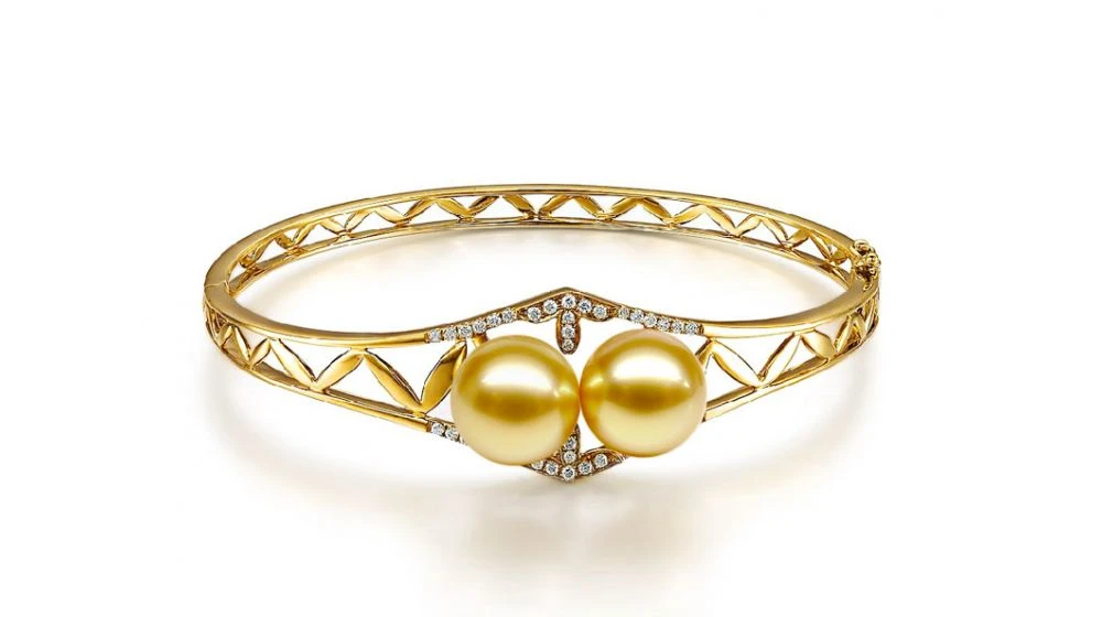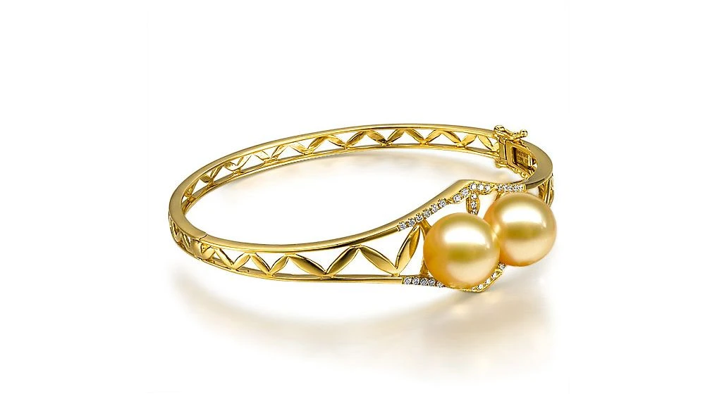 Bracelet Joaillerie Jonc – 2 Perles D’Australie Dorées – Or, Diamants
