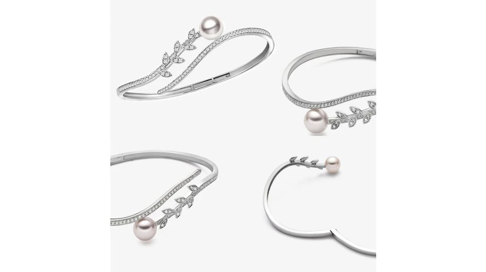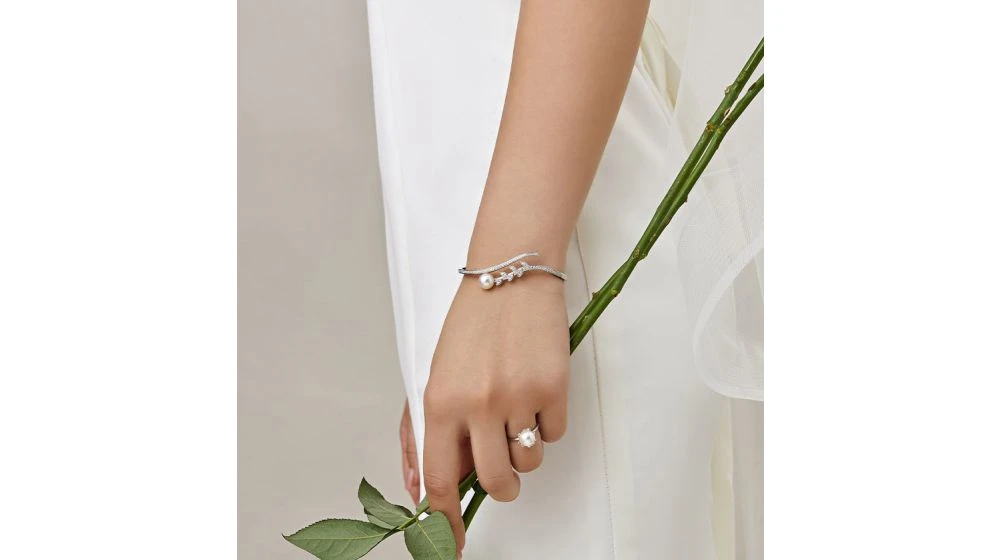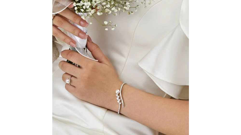 Bracelet Jonc Symphonie Nuptiale – Perle Akoya, Or Blanc, Diamants
