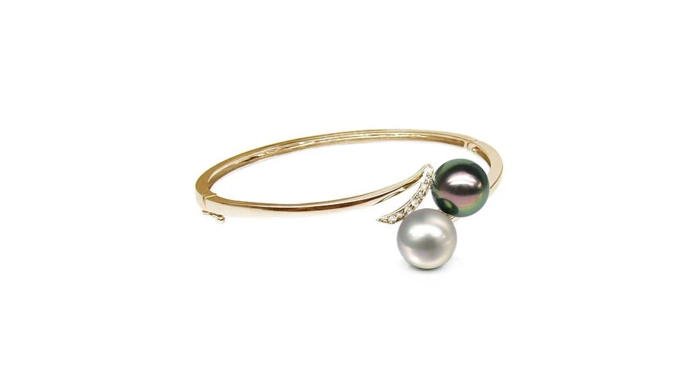 #html-body [data-pb-style=Y015DEJ]{justify-content:flex-start;display:flex;flex-direction:column;background-position:left top;background-size:cover;background-repeat:no-repeat;background-attachment:scroll}Capturant l'essence de l'élégance intemporelle, le bracelet jonc Motu Iti est une célébration de la beauté naturelle et du raffinement artisanal. Disponible en deux tailles, 55mm (55×50) et 60mm (60×55), ce bracelet en or jaune 18 carats enveloppe le poignet avec une grâce sans pareille. Il est mis en valeur par deux perles de culture exceptionnelles : une Perle de Tahiti noire et une perle d'Australie blanche, toutes deux de qualité Top GEMME, garantissant leur éclat et leur perfection. Le diamètre de ces joyaux naturels varie entre 9 et 9,8 mm, révélant un lustre éclatant et une surface impeccable. La structure rigide du bracelet est délicatement pavée de 16 diamants brillants, totalisant 0,229 carats. Chaque diamant est sélectionné pour sa pureté VS et sa couleur G, taillés en brillant pour capturer et refléter la lumière de manière spectaculaire. La coupe EX (Excellente) assure que chaque pierre brille de mille feux, sans la moindre fluorescence.