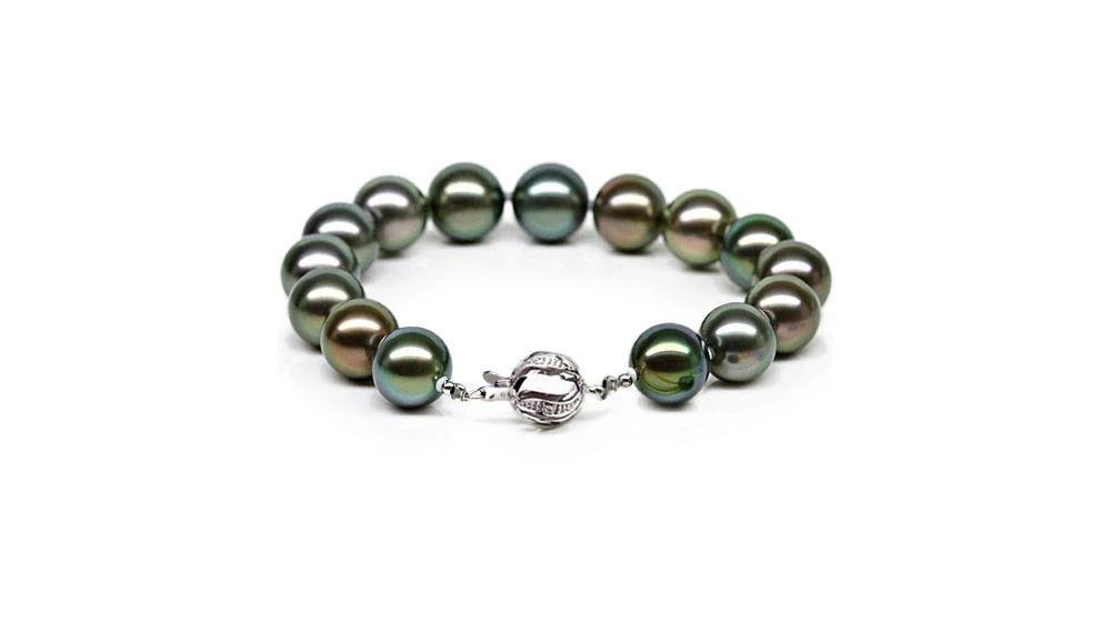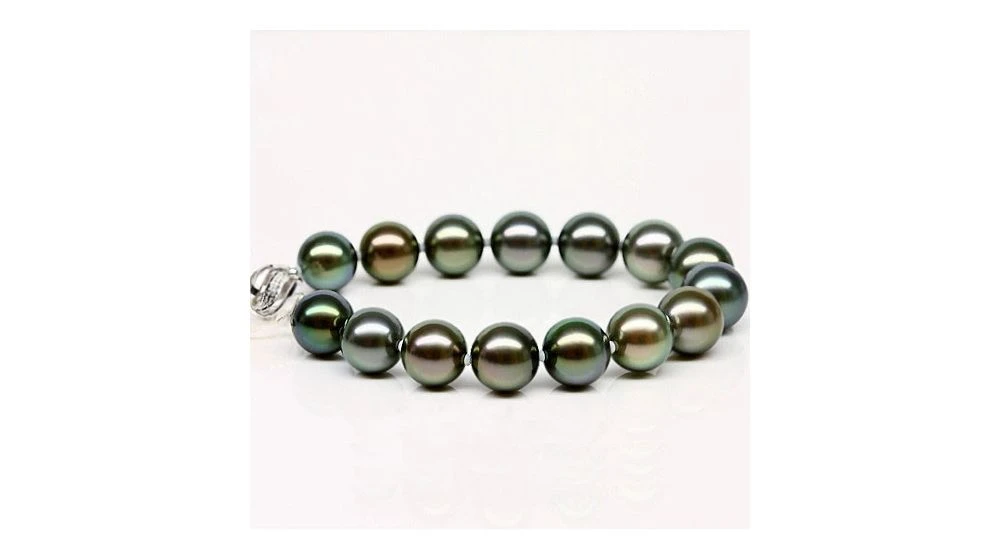 Bracelet en perles de Tahiti de qualité AAA. Ces perles multicolores de Polynésie sont déclinées en verte, bleue, paon, aubergine et grise. Son fermoir est spécialement conçu pour les colliers et bracelets en perles de larges diamètres. Tout seul ou merveilleusement en parure, ce bijou s'accorde avec un pendentif, des boucles d'oreilles de type clous ou encore un collier. Enfilage : Perles montées sur un fil en acier souple et inaltérable, séparées de pastillettes en silicone pour éviter les chocs entre elles. (Matériaux spécialement conçus pour les perles. Tenue esthétique et grand confort)