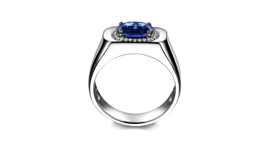 Gemperles réincarne l’esprit moderne pour l’homme avec Finlay. Virile et racée, cette chevalière en or blanc 18 carats est sertie d'un gros saphir bleu de Ceylan d'un poids de 1.90 carats. Comme si cela n'était pas suffisant, la pierre principale est elle aussi entourée d'un pavage de 27 diamants environ pour un poids de 0.27 carat. Large et puissante, Finlay rayonne via des lignes particulièrement fortes pour un univers sensuel.