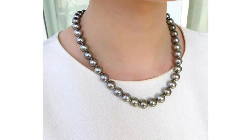 Notre collection de colliers en perles de Tahiti transportent les sens sur le rythme enivrant de bijoux aux notes précieuses et exotiques. Dans cet esprit, nous vous proposons Clotaire, un collier en perles de Tahiti de qualité AAB. Ces perles sont de couleur bronzes et possèdent des tons enivrant virant légèrement sur le gris. Le collier est constitué de 8 perles de diamètre 10/11mm ainsi que 33 perles de 9 à 10mm. Ce collier totalise 41 perles. L'enfilage : Les perles sont montées sur un fil en acier souple et inaltérable, séparées de pastillettes en silicone pour éviter les chocs entre elles. Ces matériaux sont spécialement conçus pour les perles et importés du Japon. leur tenue est esthétique et grand confort.