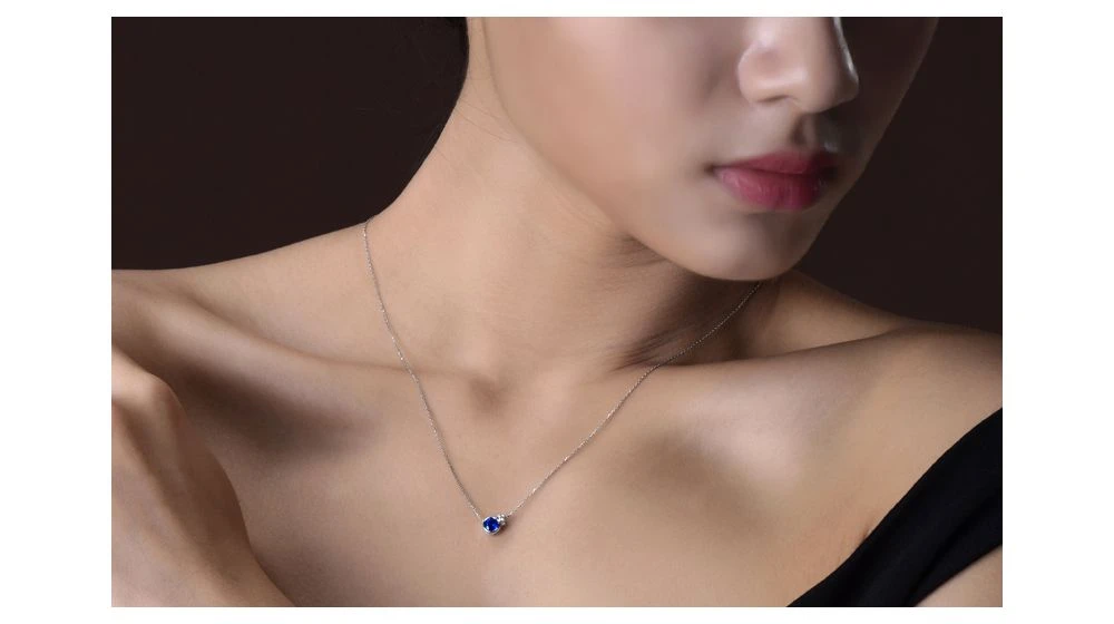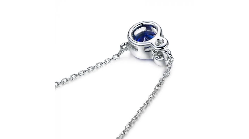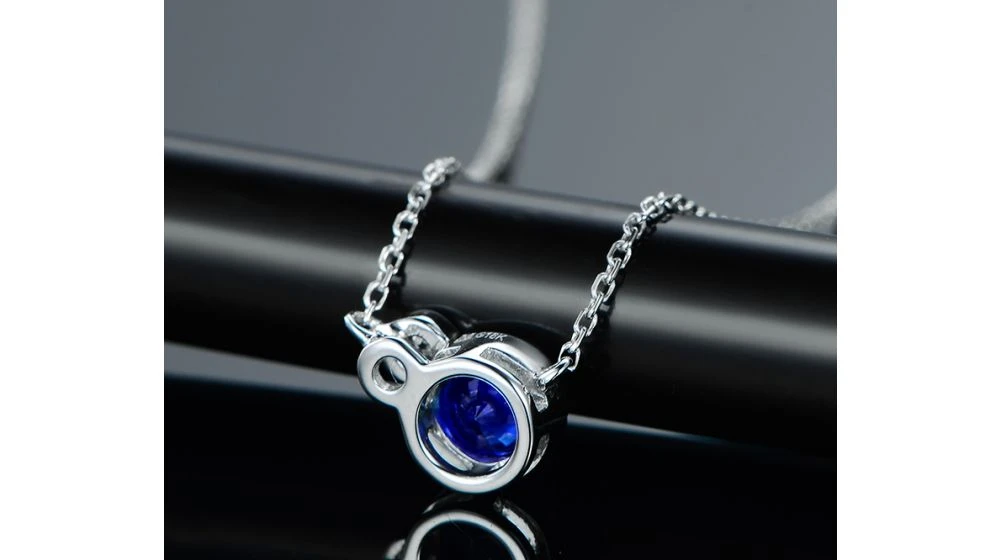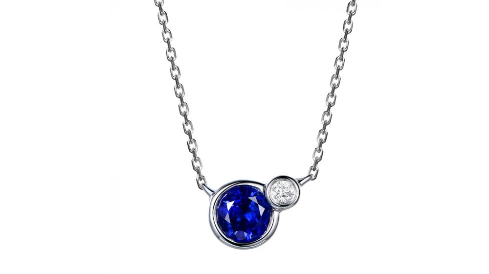 Collier Pendentif Or Blanc, Saphir Et Diamant Sertis Clos