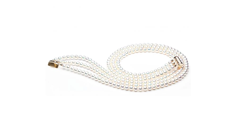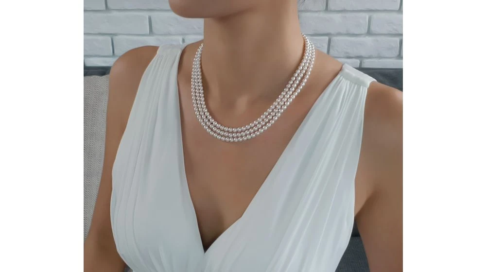 Collier Perles 3 Rangs Mariage. Perle Blanche 5/5.5mm