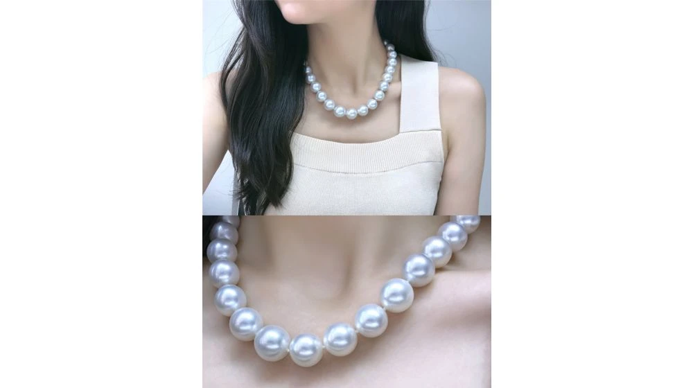 Gemperles vous propose un collier d’une extrême beauté. 35 perles blanches en provenance directe des fermes australiennes mesurent respectivement entre 11 et 13mm de diamètre. Plus précisément, se distinguent 29 perles de 11 à 12mm et 6 perles de 12 à 13mm. Soit un total de 35 perles pour une longueur unique de 45cm (fermoir inclus). Les perles d’Australie sont les plus grosses, les plus rares et surtout les plus luxueuses de toutes les familles de perles. Ce collier se porte idéalement lors de vos soirées habillées. Nous pouvons vous assurer un vif succès auprès de votre entourage. Ce bijou est une pièce d’exception, un symbole des valeurs du luxe. Enfilage : Perles montées sur un fil en acier souple et inaltérable, séparées de pastillettes en silicone pour éviter les chocs entre elles. (Matériaux spécialement conçus pour les perles. Tenue esthétique et grand confort)