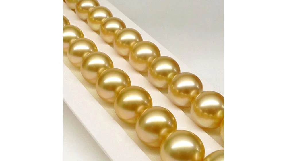 Collier en perles d’Australie de couleur naturellement dorée. Ces perles sont le fruit d’une sélection exclusive. Le collier se distingue plus particulièrement au niveau des imperfections que comportent les perles ; Il n'y en a quasiment aucune (surface de nacre presque parfaite). Rigoureusement calibrées, 36 perles bien rondes se classent via ses 19 perles de diamètre 10/11mm et ses 17 perles de taille 11/12mm, une pièce de joaillerie très rare. Enfilage : Perles montées sur un fil en acier souple et inaltérable, séparées de pastillettes en silicone pour éviter les chocs entre elles. (Matériaux spécialement conçus pour les perles. Tenue esthétique et grand confort)