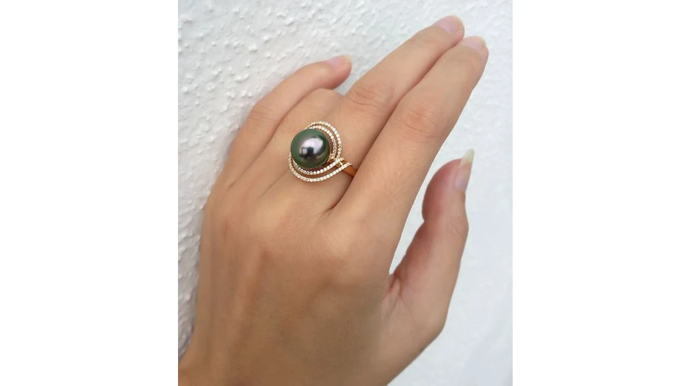 Création D’orfèvrerie – Bague Luxe – Perle De Tahiti, Or Jaune, Diamants