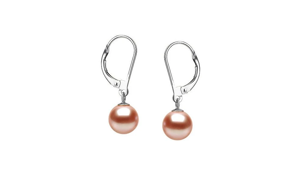 Dormeuses Boucle Oreille En Or Blanc – Perles De Culture Roses 8/9mm