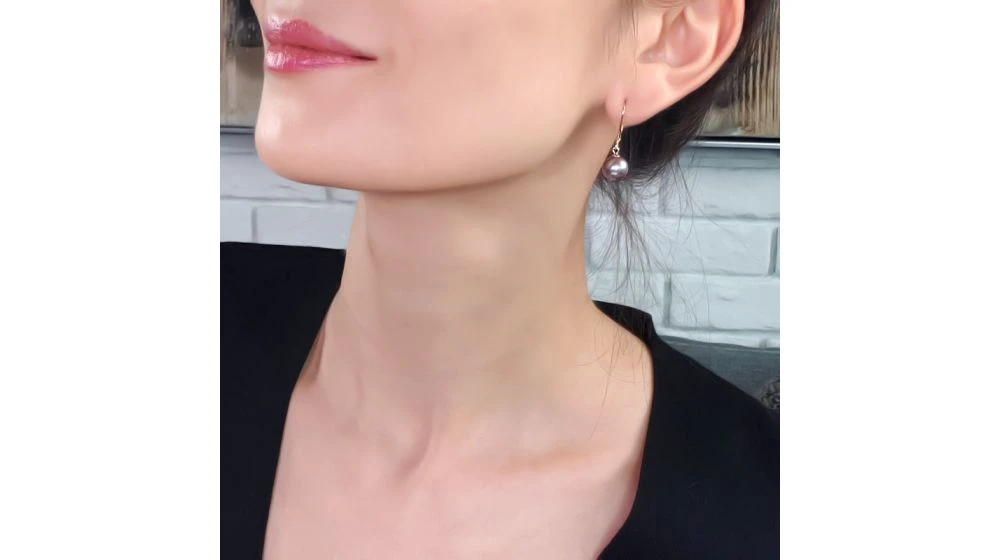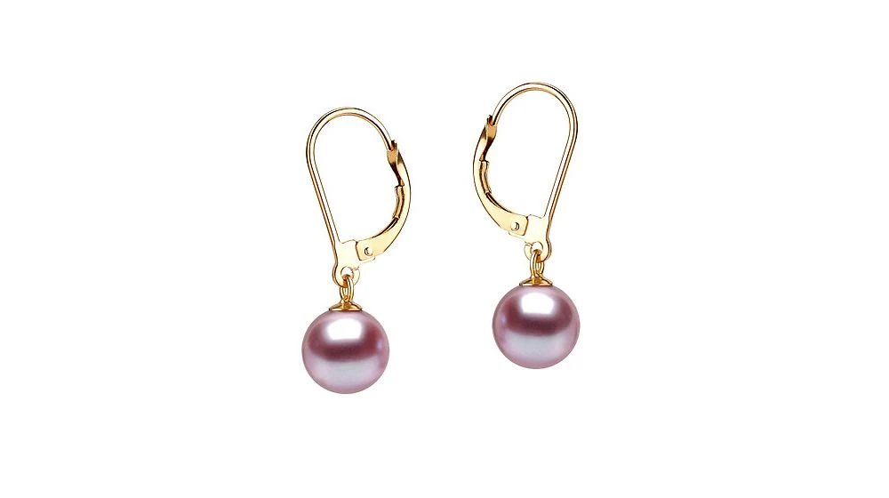 KALI Boucles Oreilles Dormeuse Or Jaune. Perles De Culture Lavandes