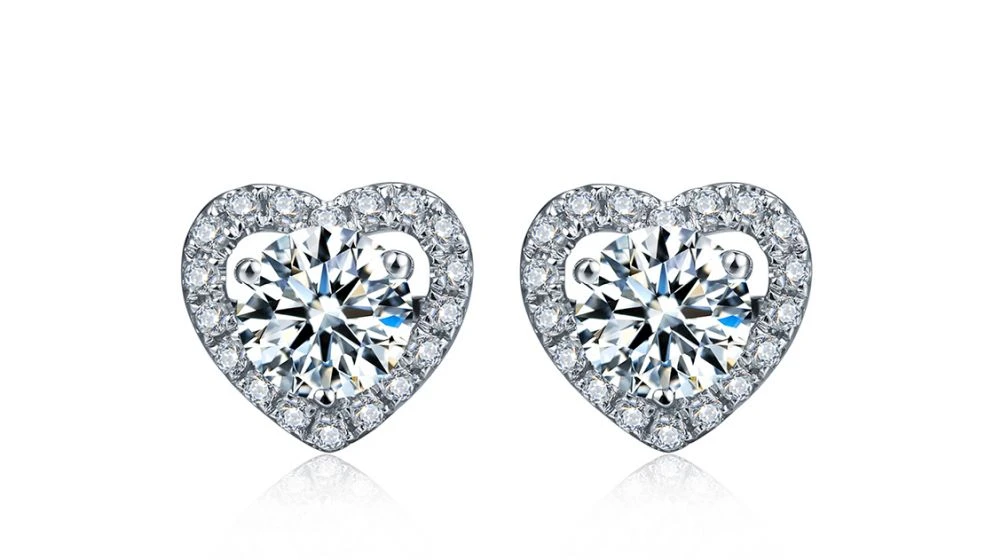 MARINA Boucles Oreilles Diamants 0.60ct. Or Blanc. Coeur
