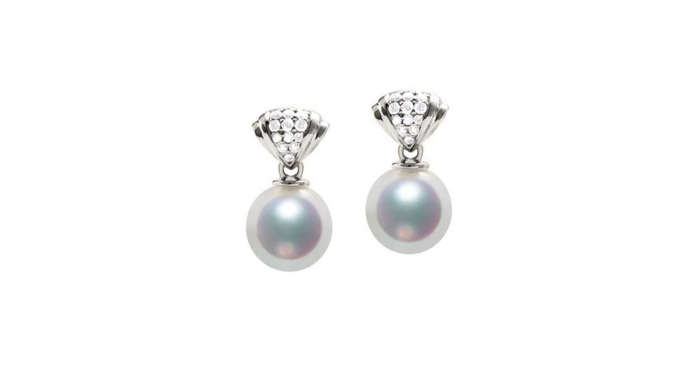 Boucles Oreilles Pendants – Perles Akoya – AAA – Or Jaune Et Diamants