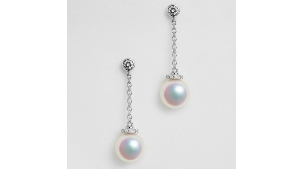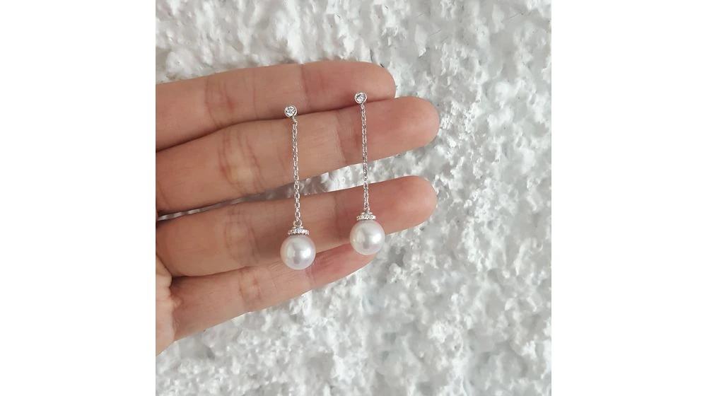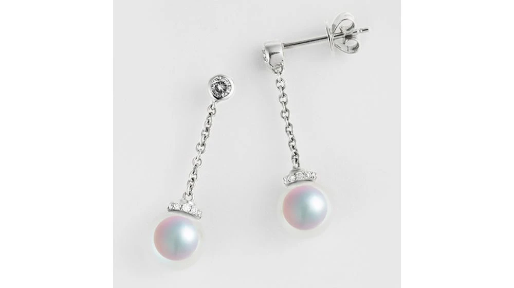 Pendantes Chainette Forçat. Perles Akoya Or Blanc Et Diamants
