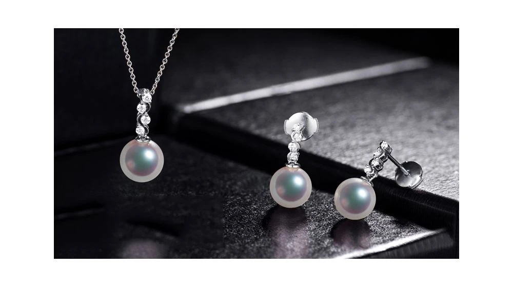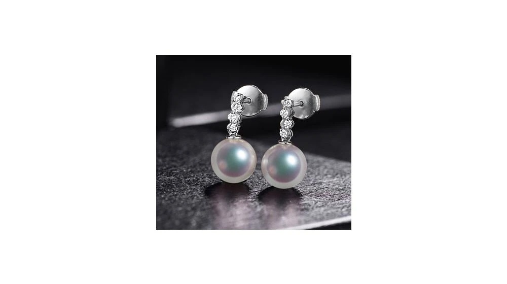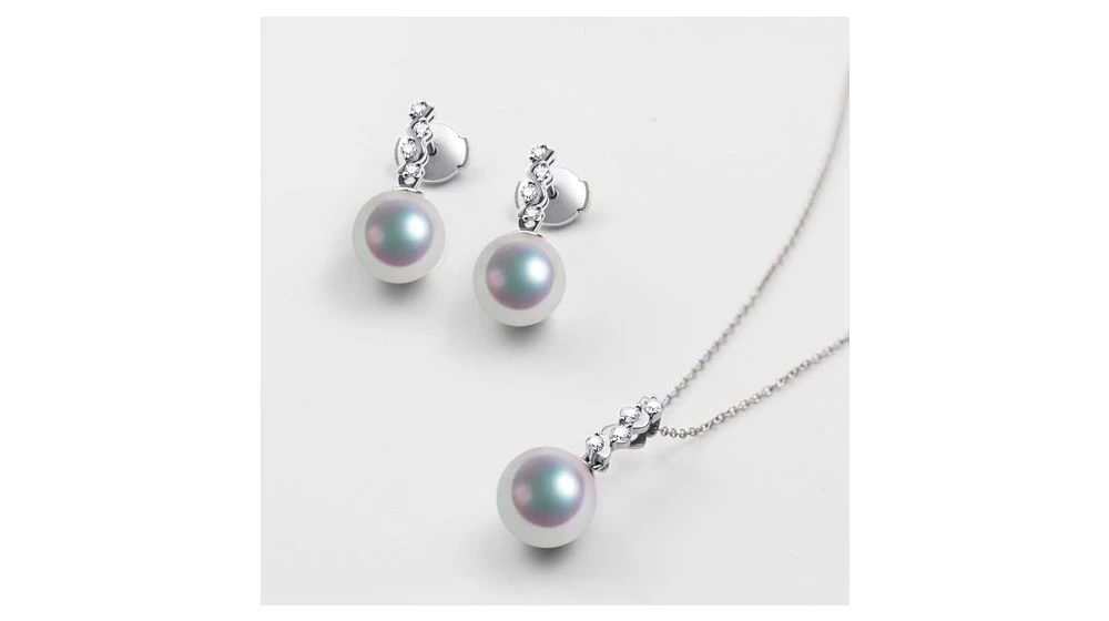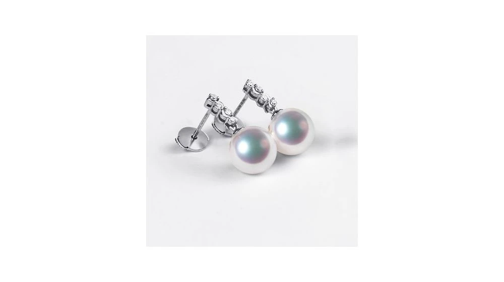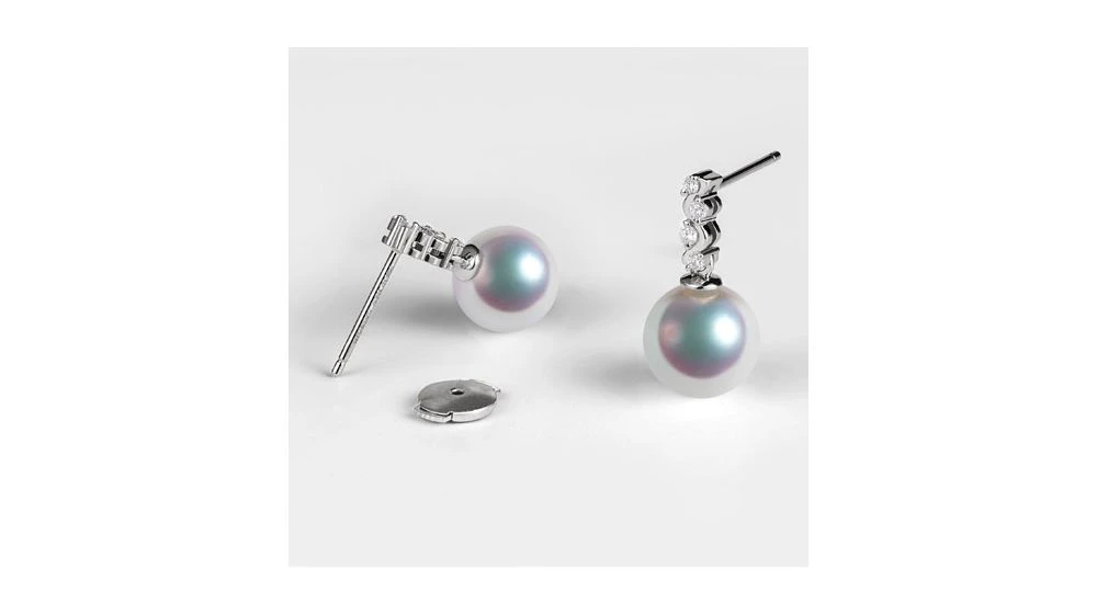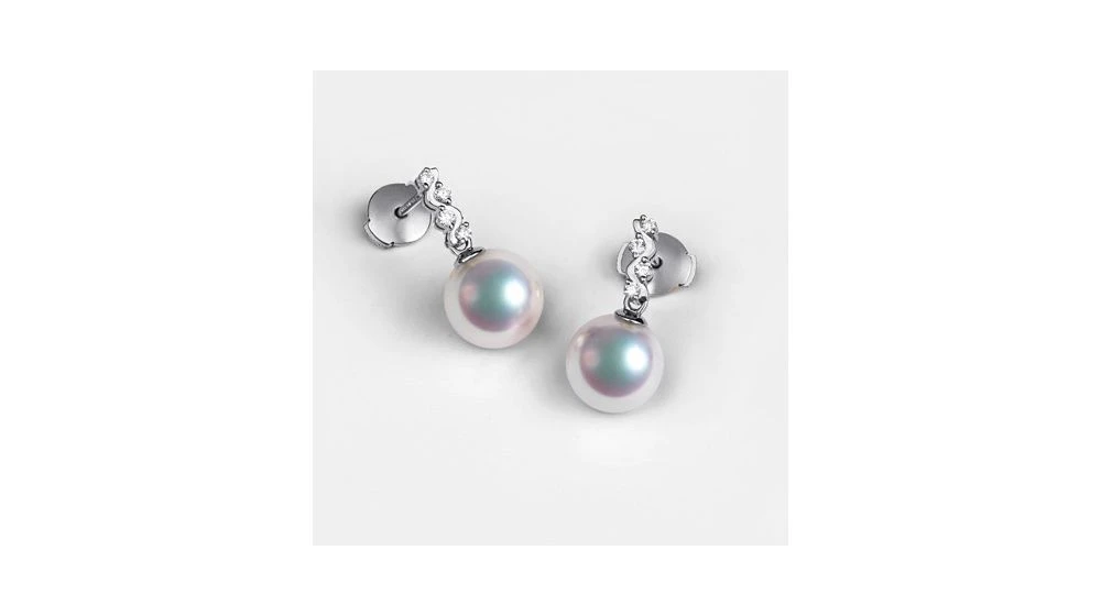Pendants Oreilles Miya. Perles Akoya Japon. Or Blanc, Diamants